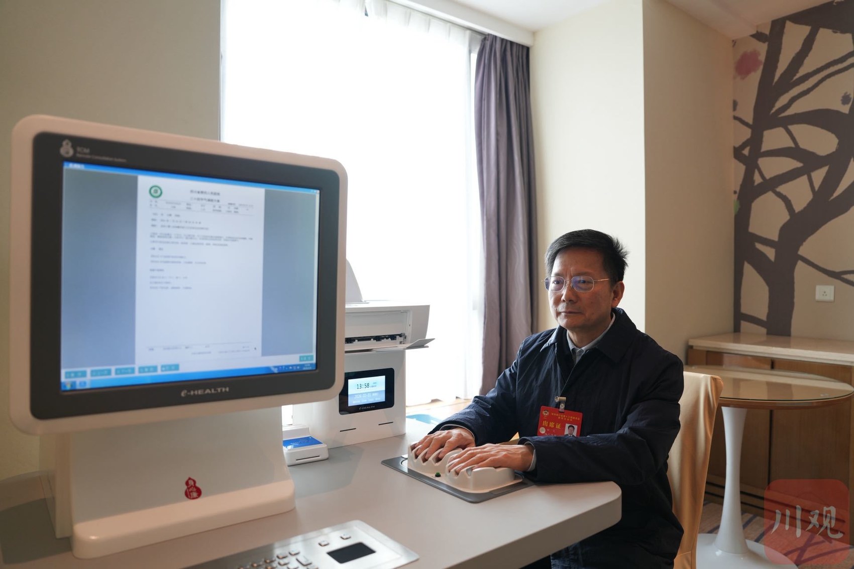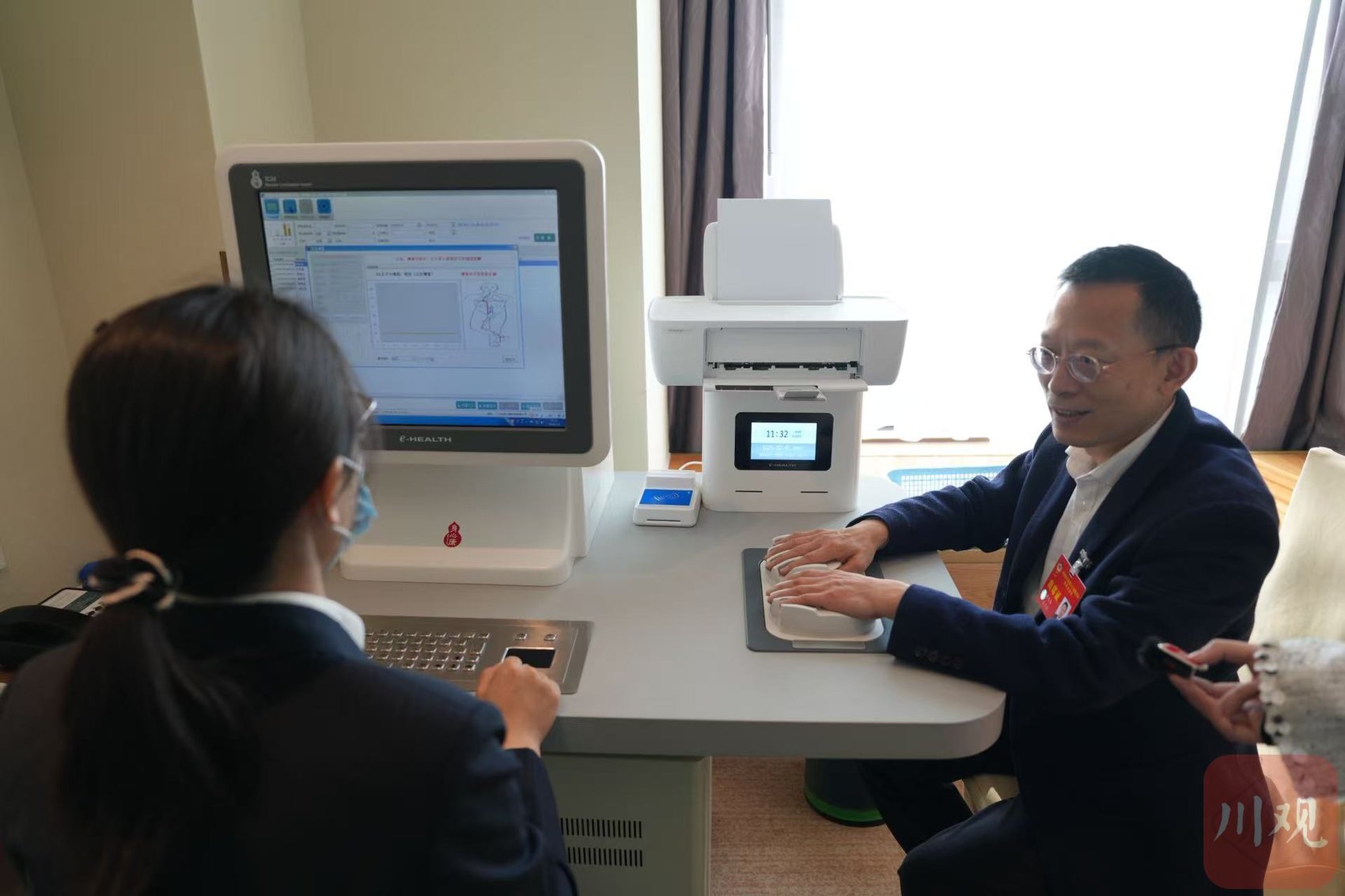 2月1日,在医卫界别驻地会场一角,一台被称为“中医CT”的中医经络检测仪,正以充满科技感的方式诠释古老智慧。在四川省第四人民医院针灸理疗科副主任医师陈兴良引导下,体验者清洁双手后,将掌心贴合于采集单元,设备低鸣声中,仅需 80秒,一份涵盖经络、脏腑、体质、情志的综合报告便被快速打印出来。全程不抽血、无辐射。