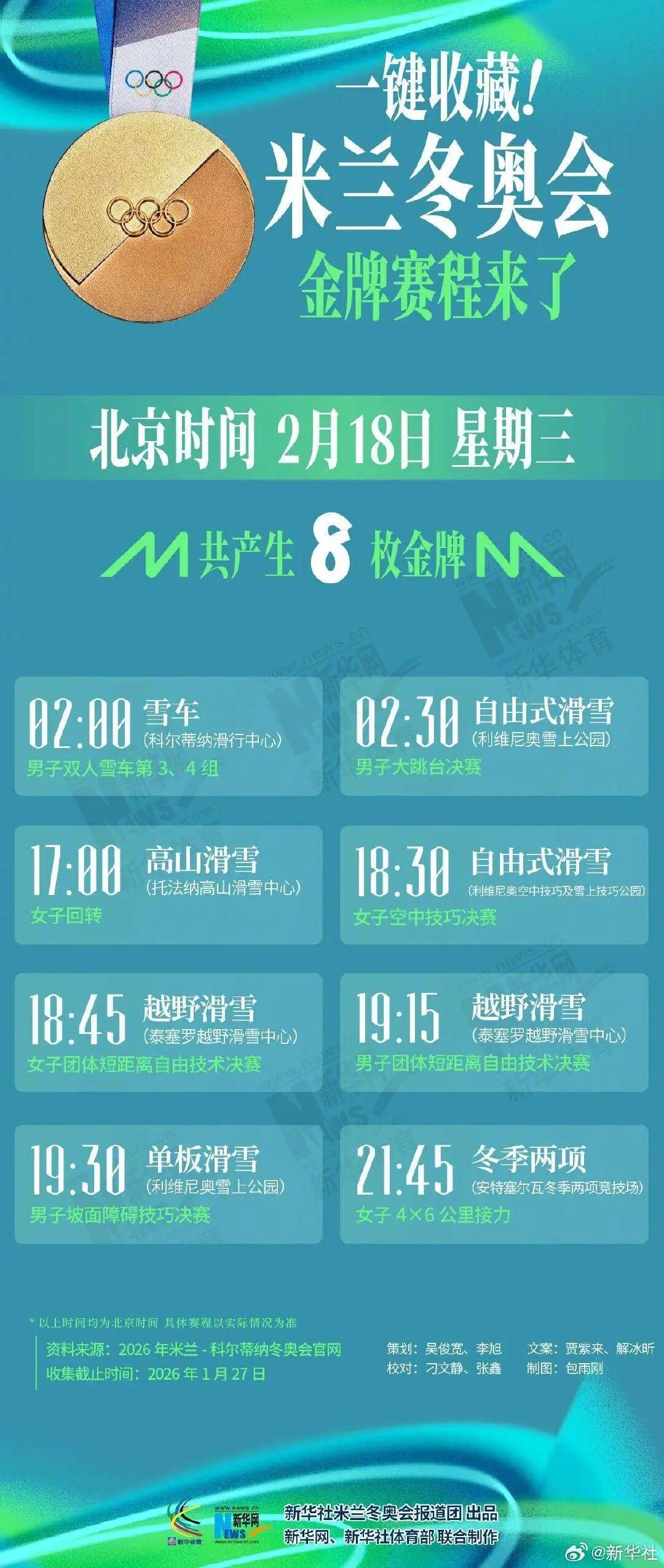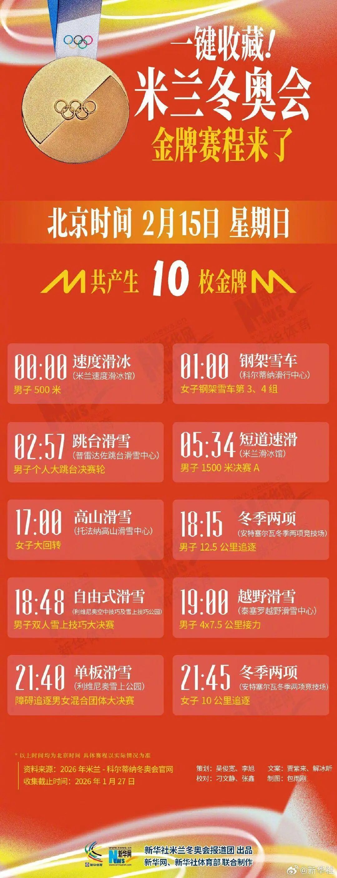 转存收藏米兰冬奥会金牌赛程↓↓