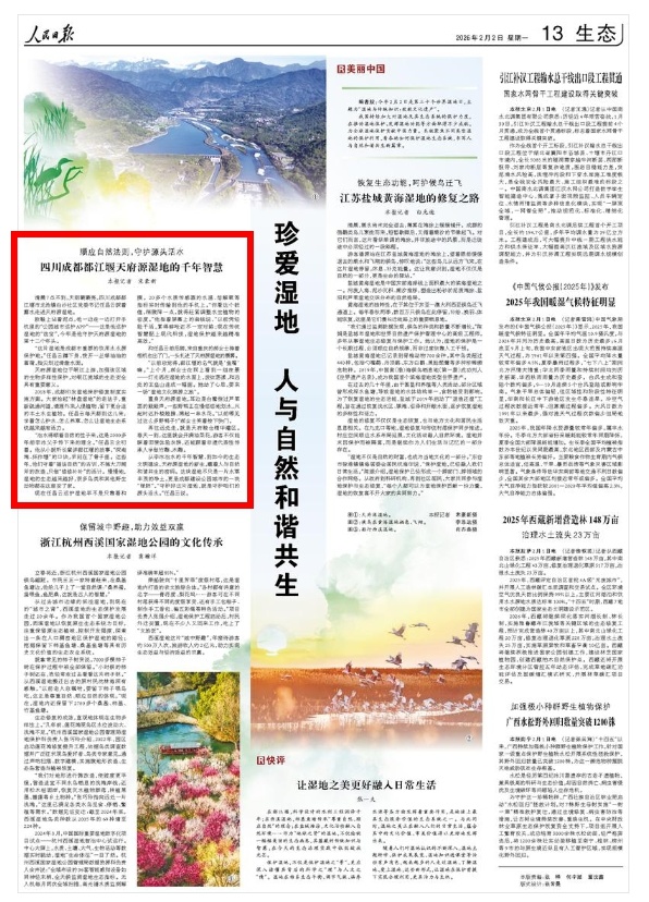 从李冰治水的千年智慧,到如今的生态文明建设,天府源湿地的新生,藏着人与自然和谐共生的密码。这块湿地不只是一片水草丰茂的净土,更是成都建设公园城市的一块“绿肺”。“守护好这片湿地,就是守护咱们的源头活水。”任昌云说。