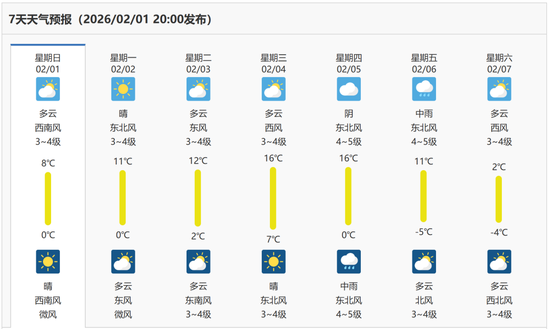 2月6日最低气温-5℃