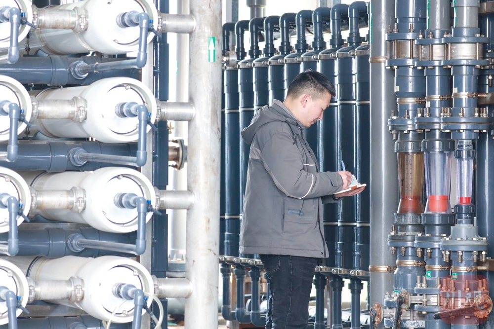 工作人员正在记录净化回收废水的相关数据