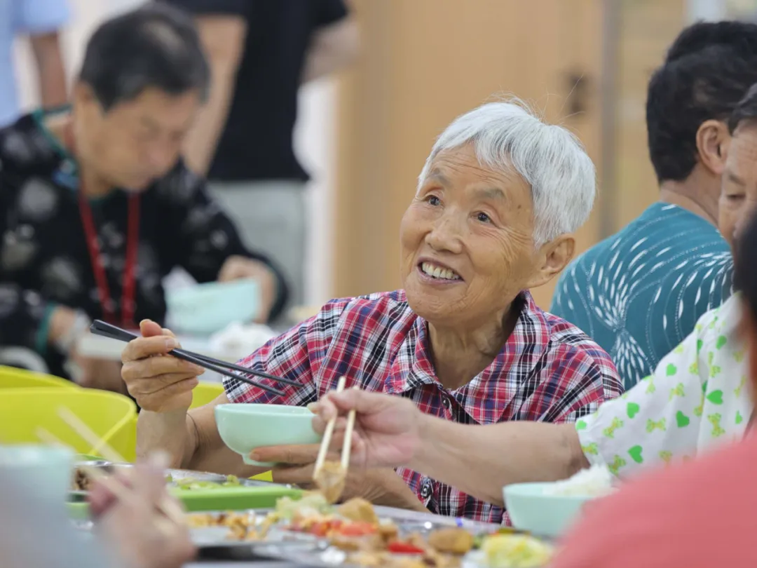 合肥新站高新区站北社区食堂内,老人正在享用营养可口的午餐。通讯员 张敏 摄