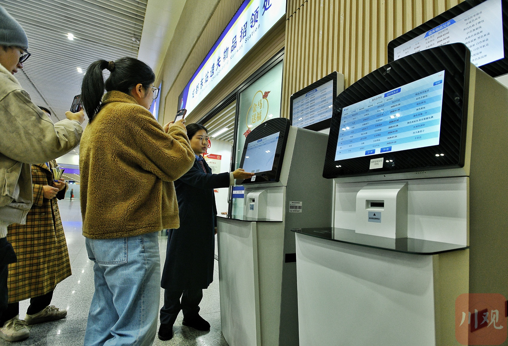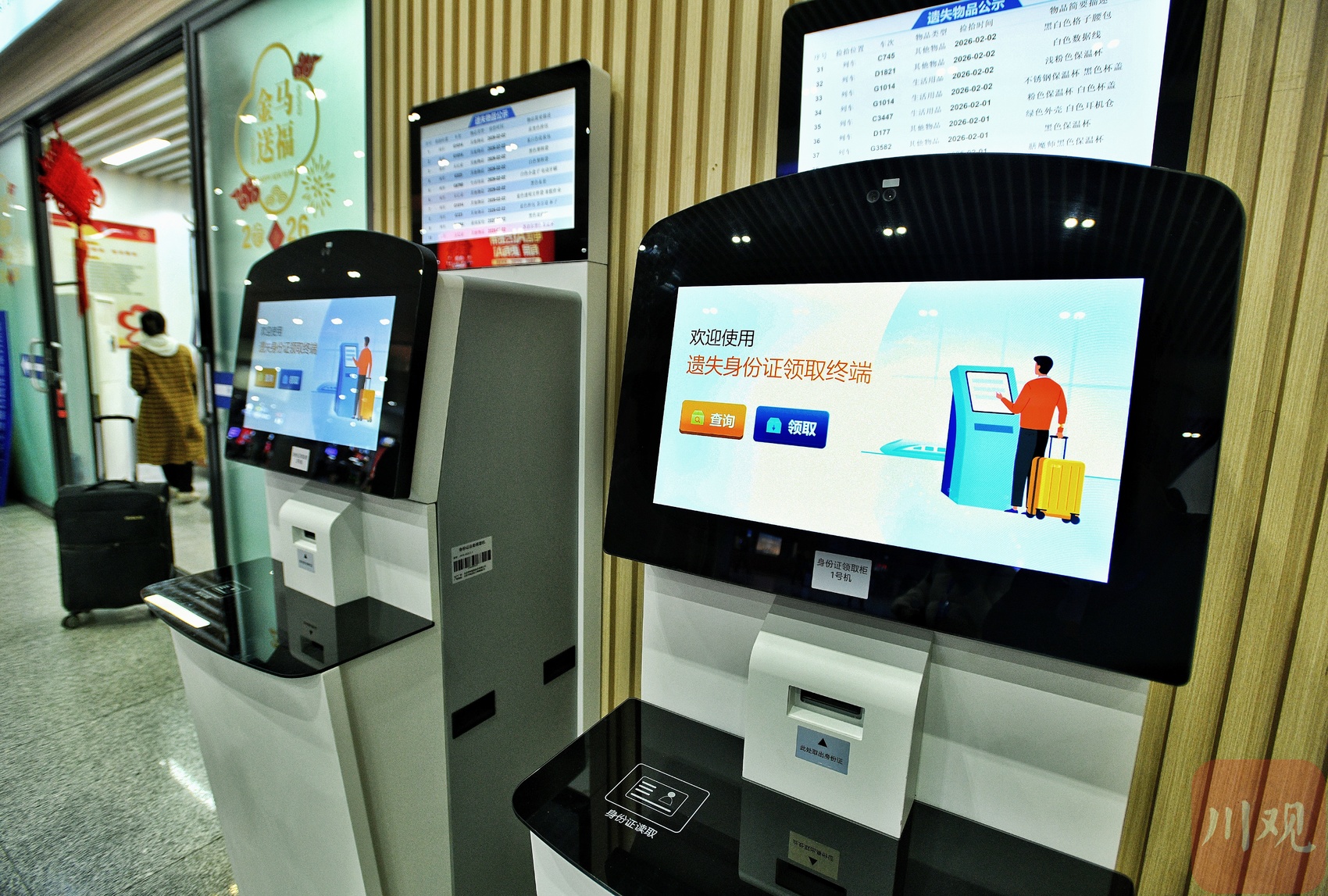 成都东站失物招领处新添置的遗失身份证领取机。