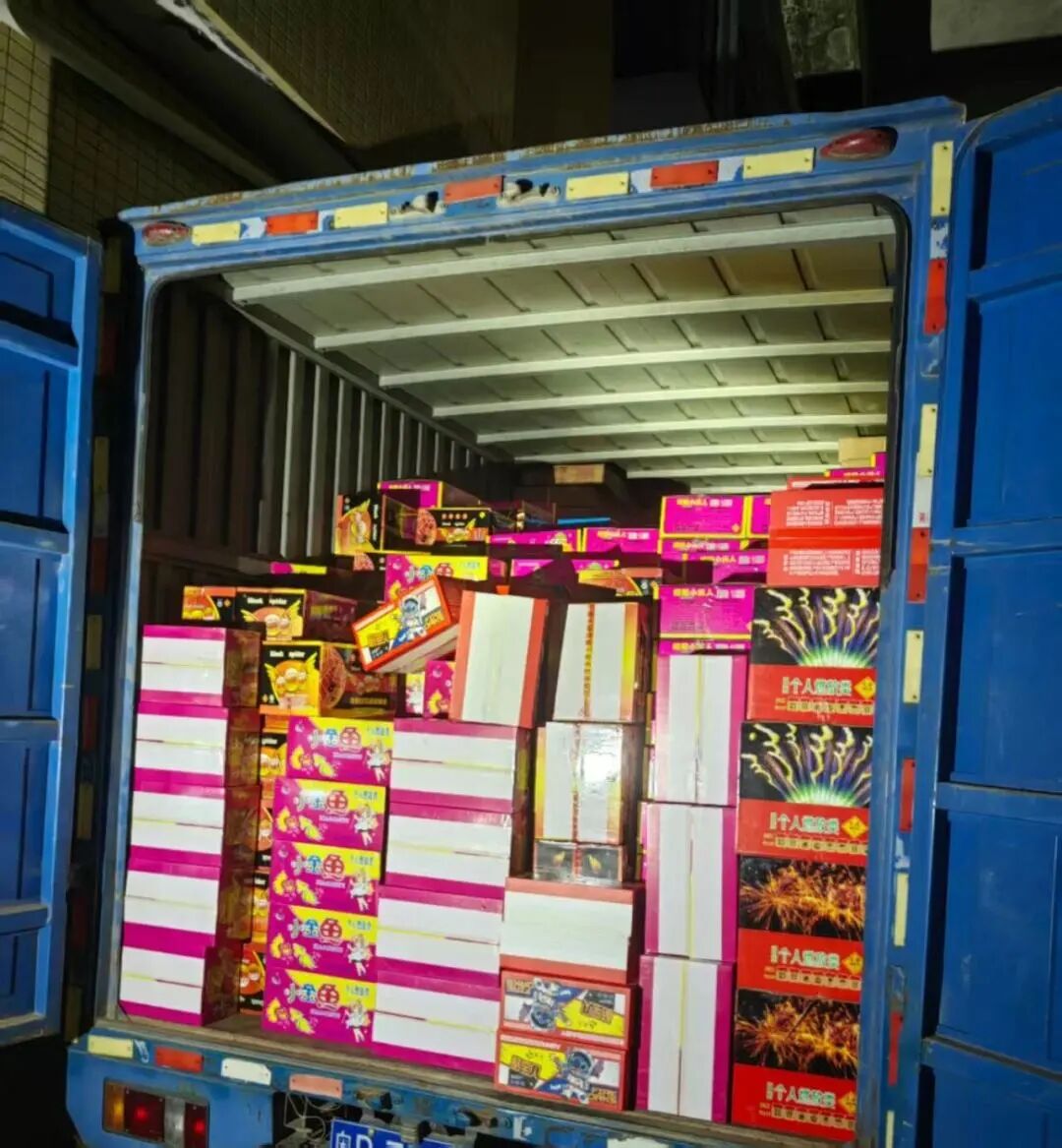 警方查获正在违规装卸烟花爆竹的卡车