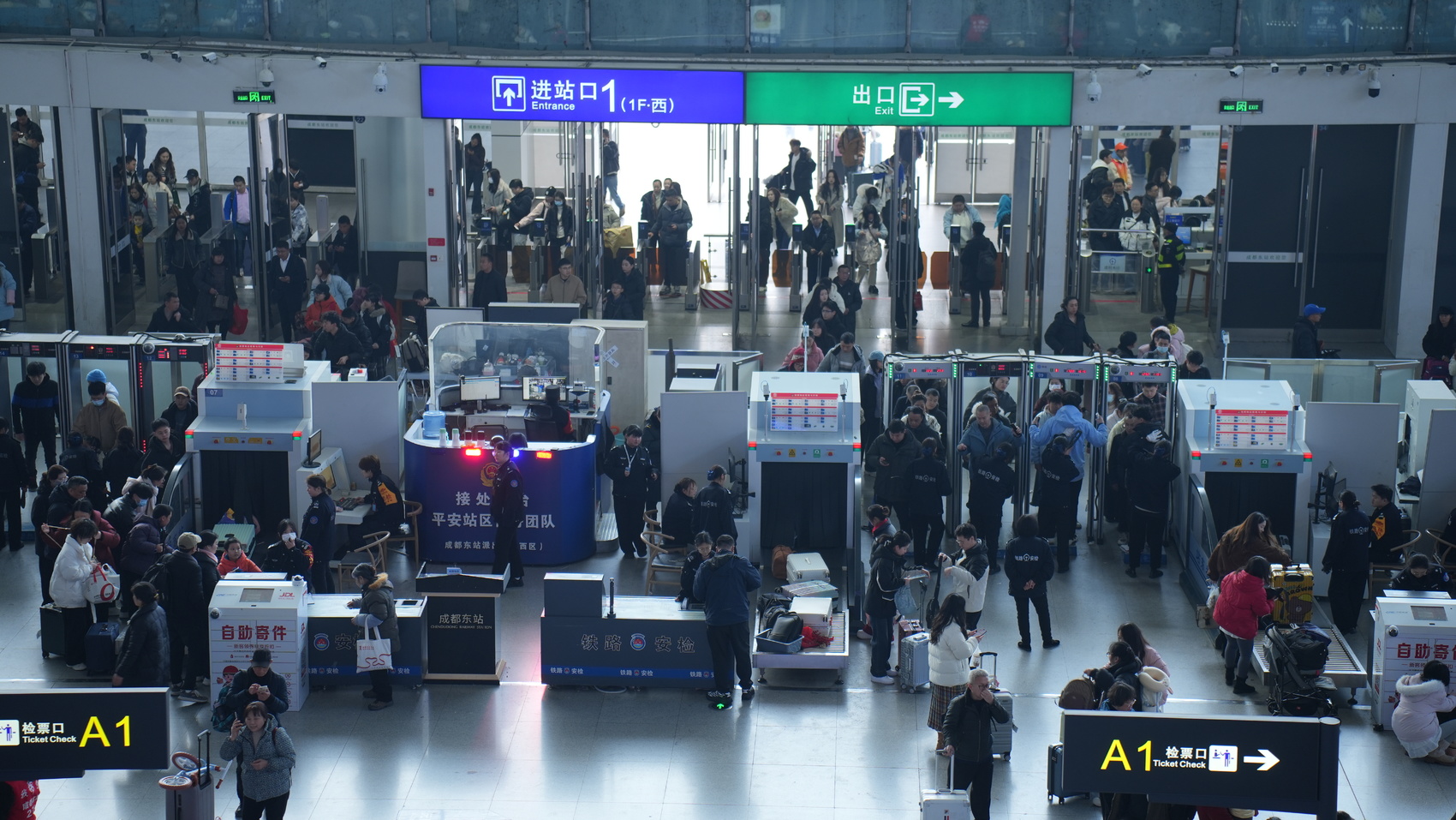 成都东站汽车客运站智慧停车系统停车位从120个扩容至253个,通过动态引导与线上支付模式,可有效缓解高峰期“接送远”问题;成都东站汽车客运站与火车西站联动提供400余个智能行李寄存柜的24小时自助服务,推出爱心预约、行李送站等举措,有效减少乘客“负重出行”困扰;双流国际机场启用全国首创的38台人工并行自助验证闸机与42台A3级别毫米波安全门,搭配AI智能判图技术,实现 安全与便捷双提升。