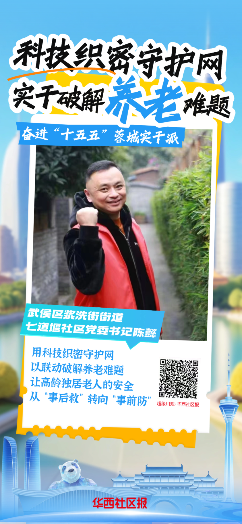 武侯区浆洗街街道七道堰社区党委书记 陈懿:“用科技织密守护网,以联动破解养老难题,让高龄独居老人的安全从‘事后救’转向‘事前防’。”