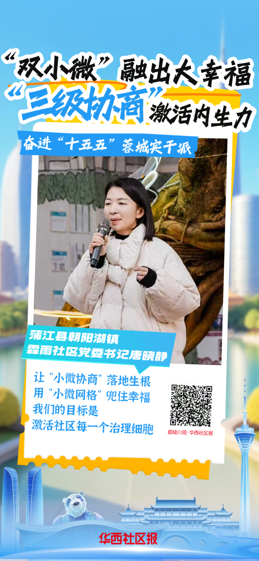 蒲江县朝阳湖镇霖雨社区党委书记 唐晓静:“让‘小微协商’落地生根,用‘小微网格’兜住幸福,我们的目标是激活社区每一个治理细胞。”
