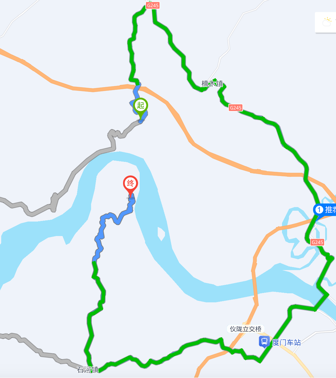 从泸溪沟到陵江村,若不乘坐渡轮,驾车距离将超过20公里