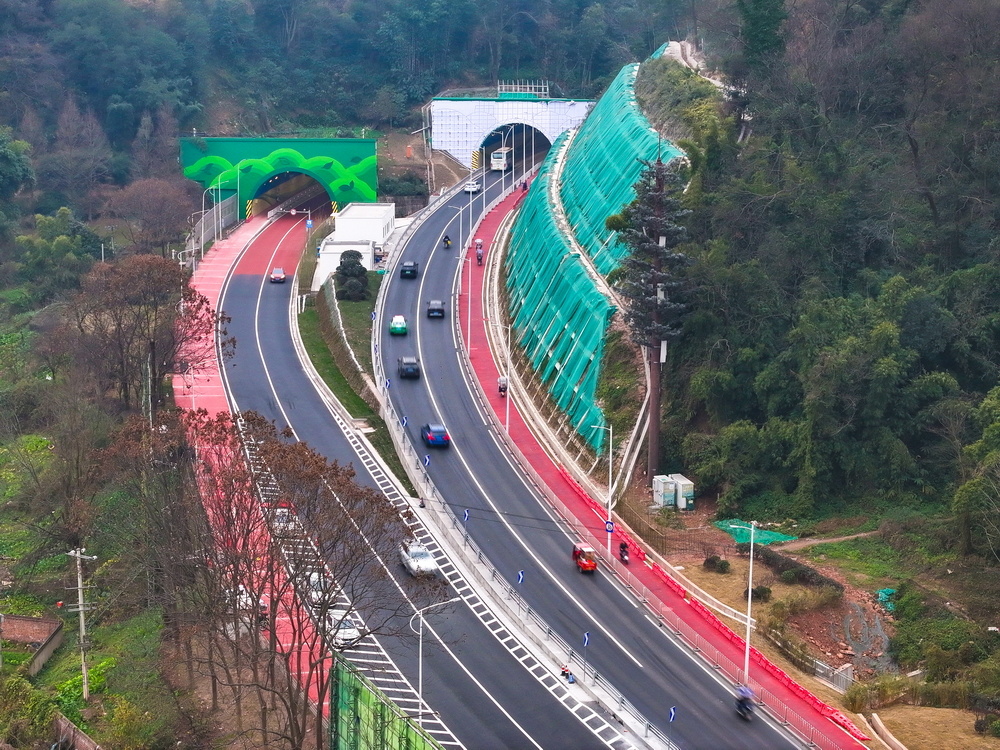 双向机动两车道+双向行人和非机动车道,各行其道!2月2日,雅安市区北外环线,市民期盼已久的青鼻山隧道,开启双向六车道通行。