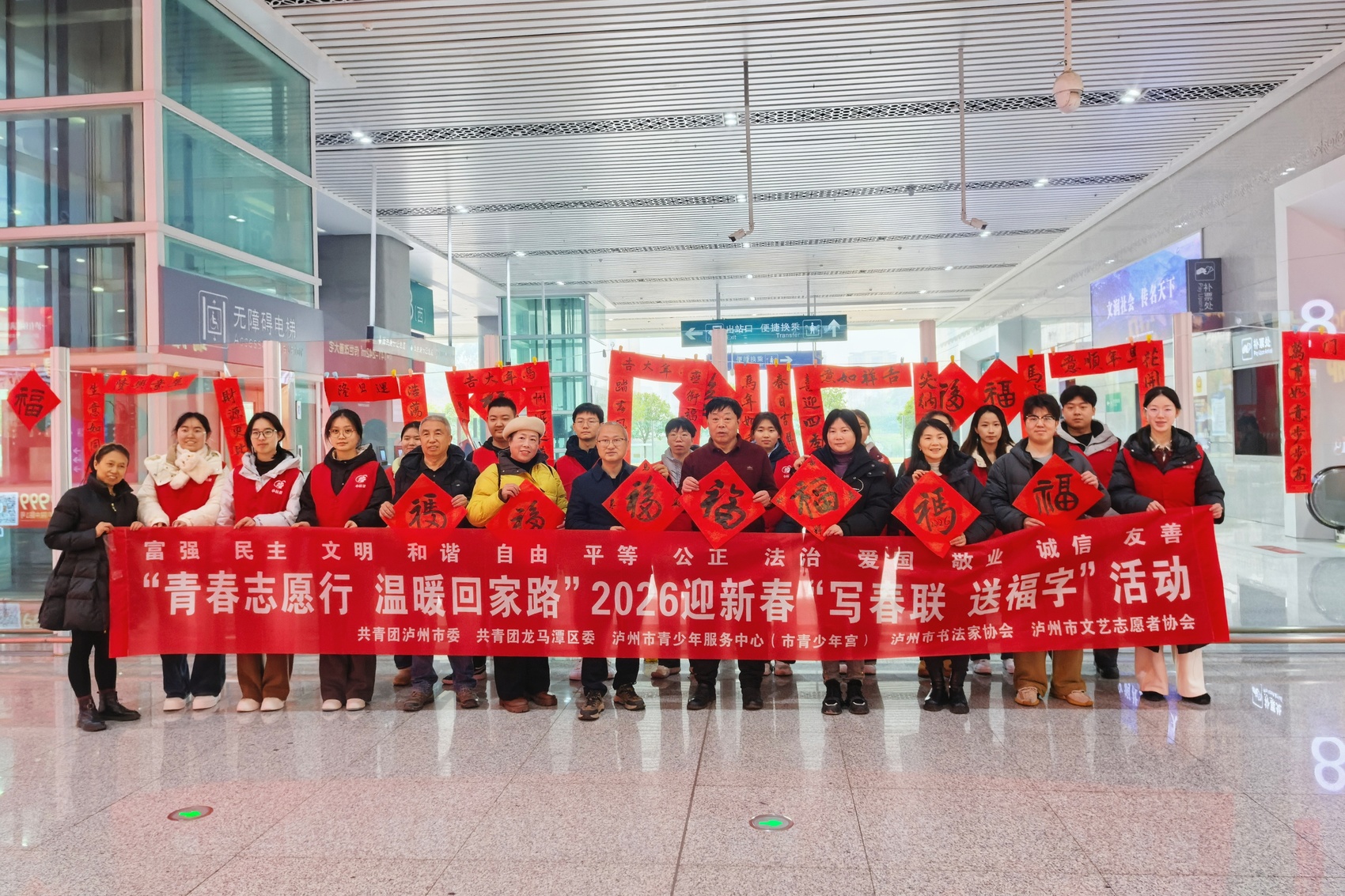春运首日,站内的送春联活动。(郭荞璐 摄)