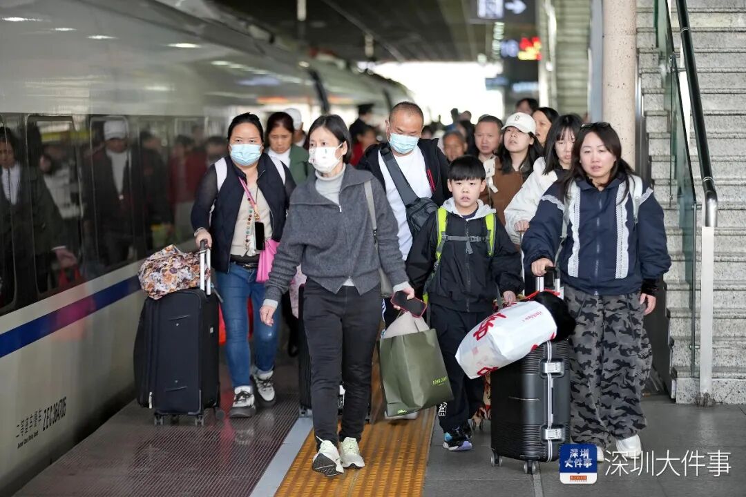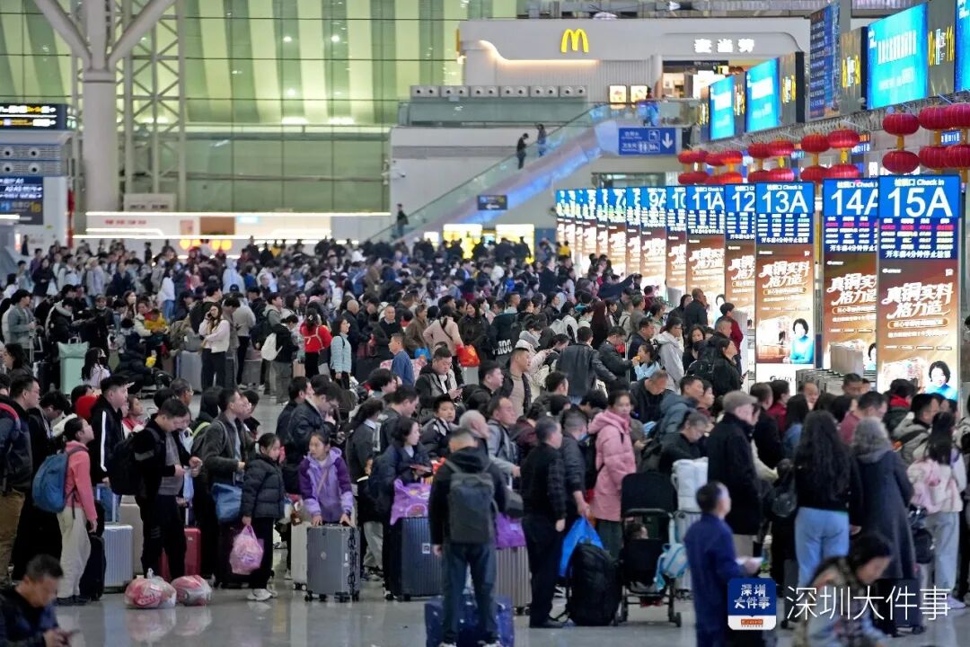 “春运首日,深圳铁路预计发送旅客35.8万人次,其中,深圳北站预计发送旅客24.4万人次。”据深圳北站“迎春花”服务队队长官艳介绍,2026年春运期间,深圳铁路部门预计发送旅客1213.5万人次,日均30.34万人次,同比增长7.5%,客流预计再创新高。其中,节前预计发送旅客671.6万人次,节后预计发送旅客541.9万人次。春运首日,深圳铁路预计共发送旅客35.8万人次,其中深圳北站预计发送旅客24.4万人次。