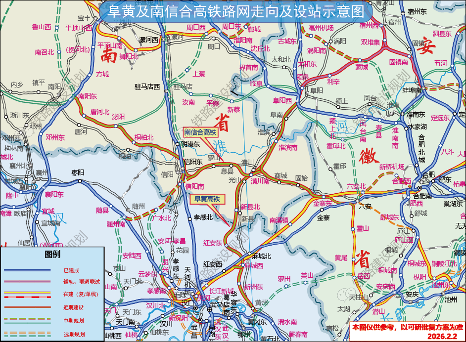 南信合高铁是宁西高铁通道的组成部分,是国家“八纵八横”高铁主通道的重要衔接线和沿江高铁的重要辅助通道之一,为国家“十四五”铁路规划研究建设项目。2026年1月,通过国家发改委和国家铁路局项目建议书评估暨行业评审,可研进入批复阶段。