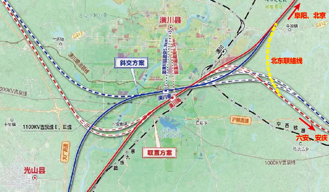 本次定测招标进一步明确将同步建设潢川南站北东联络线,沟通阜阳和六安方向,届时潢川以东各县市(商城、固始、金寨、六安)至北京方向将能实现高铁便捷直达。