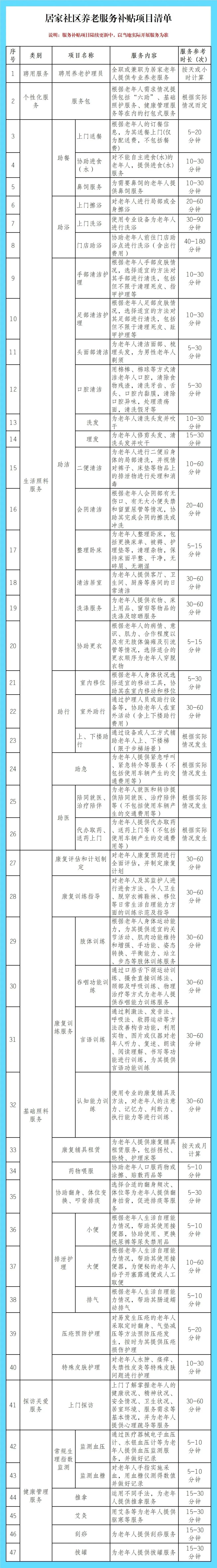 附:居家社区养老服务补贴项目清单