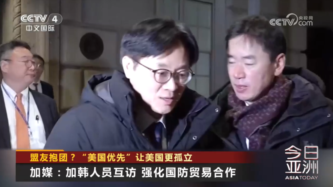 值得关注的是,加拿大与韩国加强合作,正值美国对两国再次挥舞关税大棒之际。1月24日,美国总统特朗普威胁对进入美国的加拿大商品征收100%关税;1月26日,因不满韩国对美投资进度,特朗普宣布将对韩国汽车、木材、药品以及其他“对等关税”的税率从15%提高至25%。韩国《中央日报》称,特朗普再次投下关税炸弹让韩国产业界感到困惑。