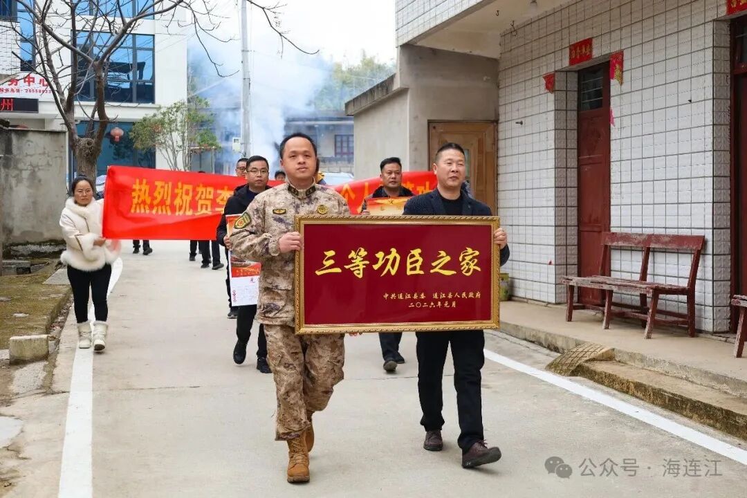 为进一步弘扬拥军优属优良传统,切实增强军人荣誉感和军属自豪感,2月2日上午,县退役军人事务局与相关乡镇工作人员组成“报喜团”,先后前往丹阳镇、蓼沿乡、潘渡镇,为李杰、黄星鸿、杨海粟、李宜芳4位立功军人家庭送去喜报,让军人军属在佳节前夕感受到来自党和政府的诚挚问候。