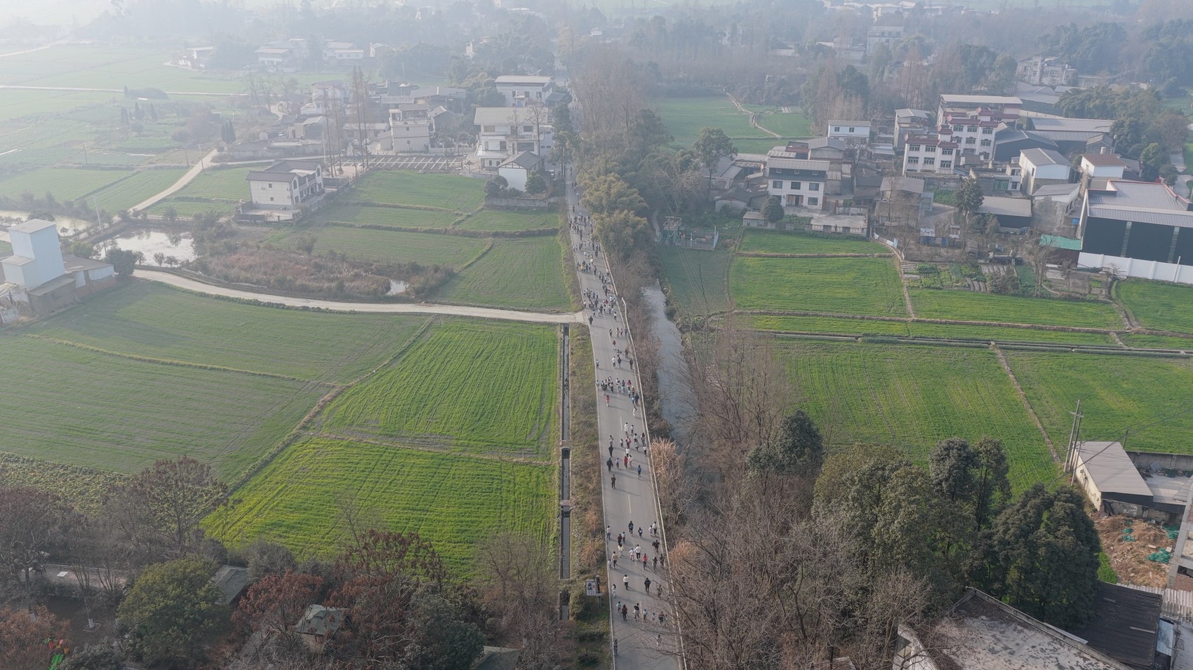 “往这边走!小心脚下!”2月1日一早,成都市新都区斑竹园街道的“三哥”谢波腰间别着喇叭和对讲机,站在金和社区的大草坪上,嗓门洪亮。当日,他和几十位邻居有一个任务:招呼好来参加“村跑”的客人,让他们跑得开心、玩得尽兴。