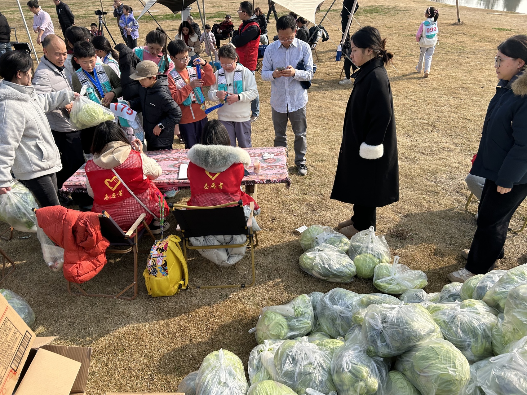 完赛福利更是充满“土”味,赛事奖品选用的是当地农家的生态农产品。小选手们在终点挂上由村民参与设计的奖牌,领取了时蔬包——萝卜、棒菜、莲花白,都是刚摘的鲜货。各年龄组第一名还有额外奖品——3斤猪肉。