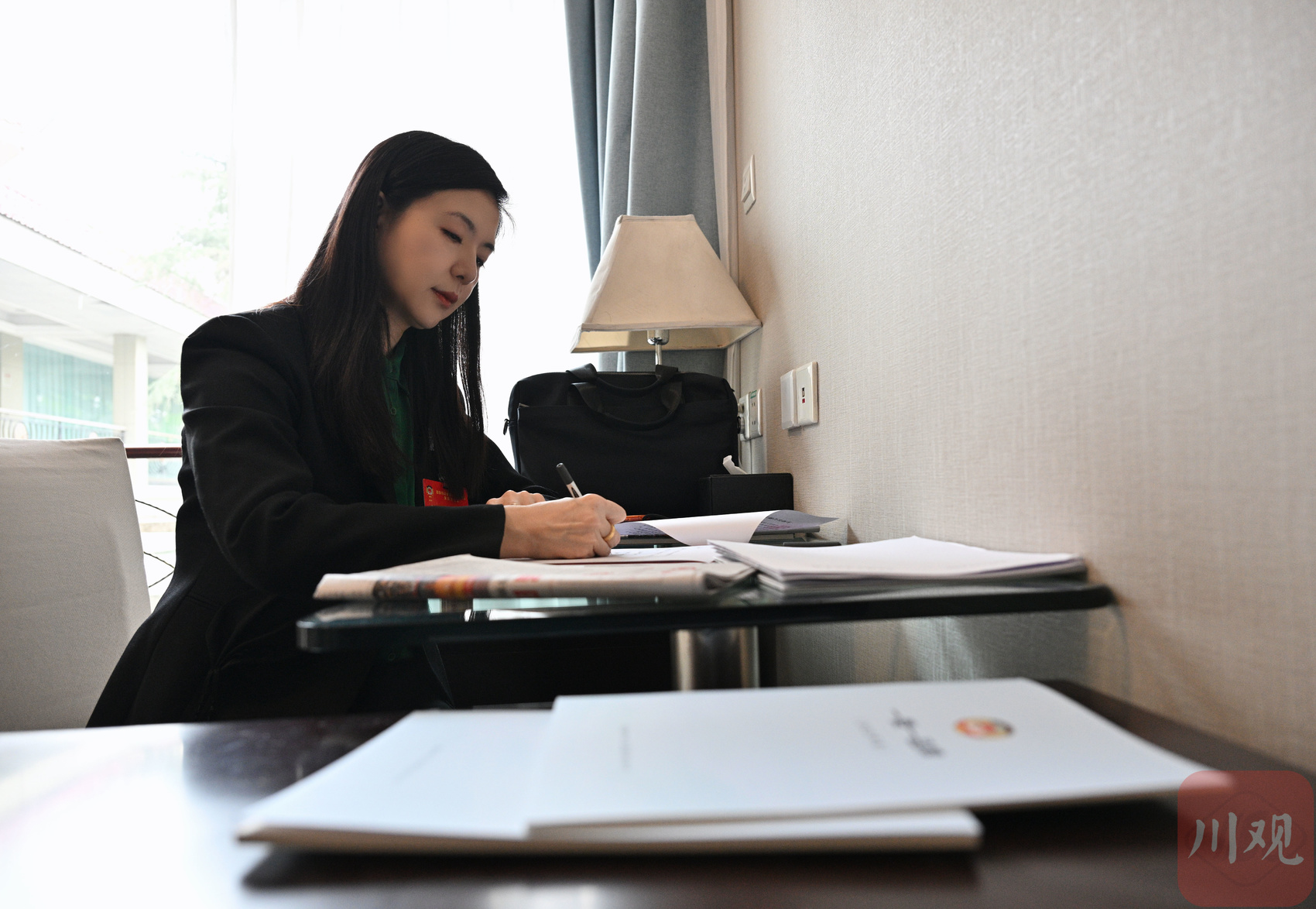 2月3日,黄艺竹委员在驻地准备发言材料。