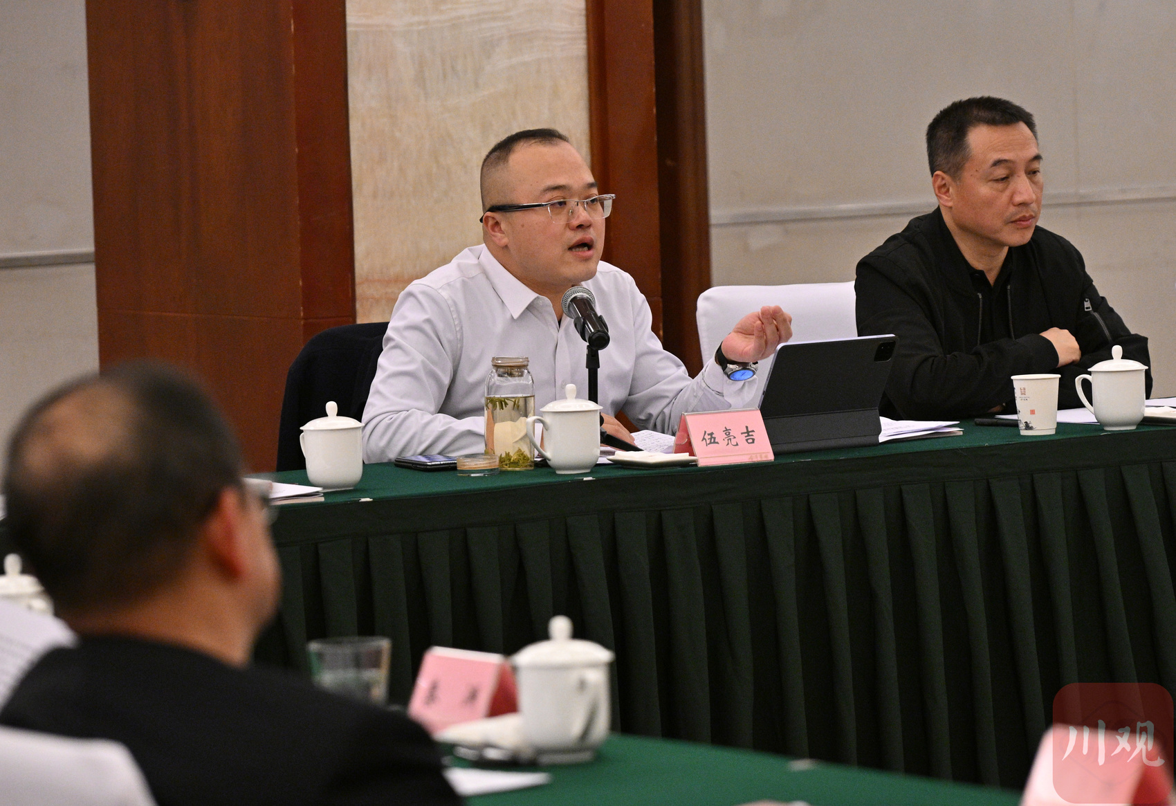 2月2日下午,伍亮吉委员(左)在小组会议上发言。