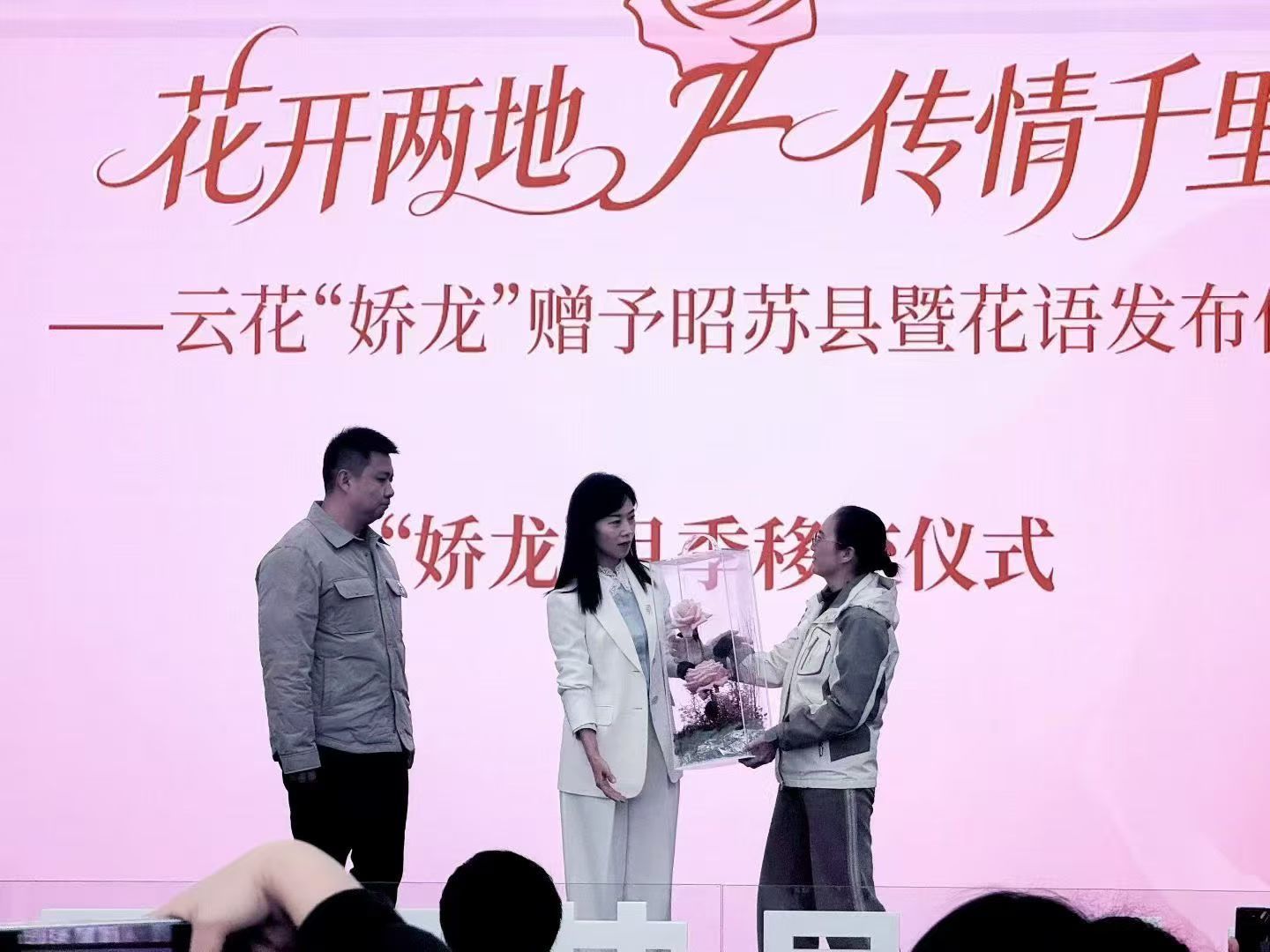 2月2日上午,“花开两地 千里传情”——云花“娇龙”赠予昭苏县暨花语发布仪式在云南昆明举行。这株云南自主培育的月季新品种,从云南科研人员的手中,被郑重交到殉职的新疆党员干部贺娇龙亲属手中。一句“若为热爱,便所向披靡”的花语,也跟着这株花,在昆明与昭苏的山海间悄然传开。