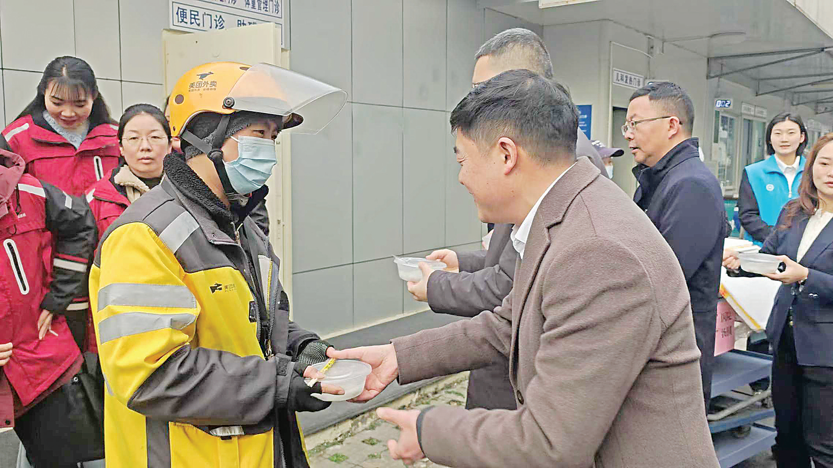 都江堰市第二人民医院为骑手送上热腾腾的汤圆