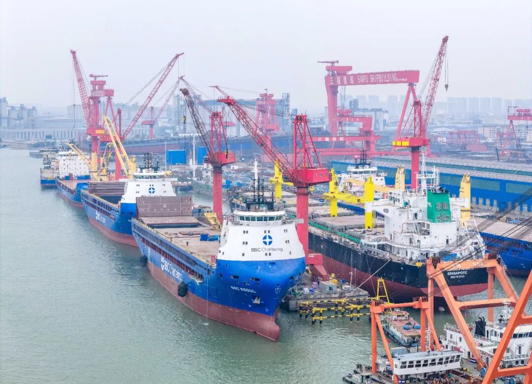 2026年2月2日,在位于江苏泰州市高港区的泰州三福船舶工程有限公司生产基地,多艘大型船舶正在建造中。周社根摄