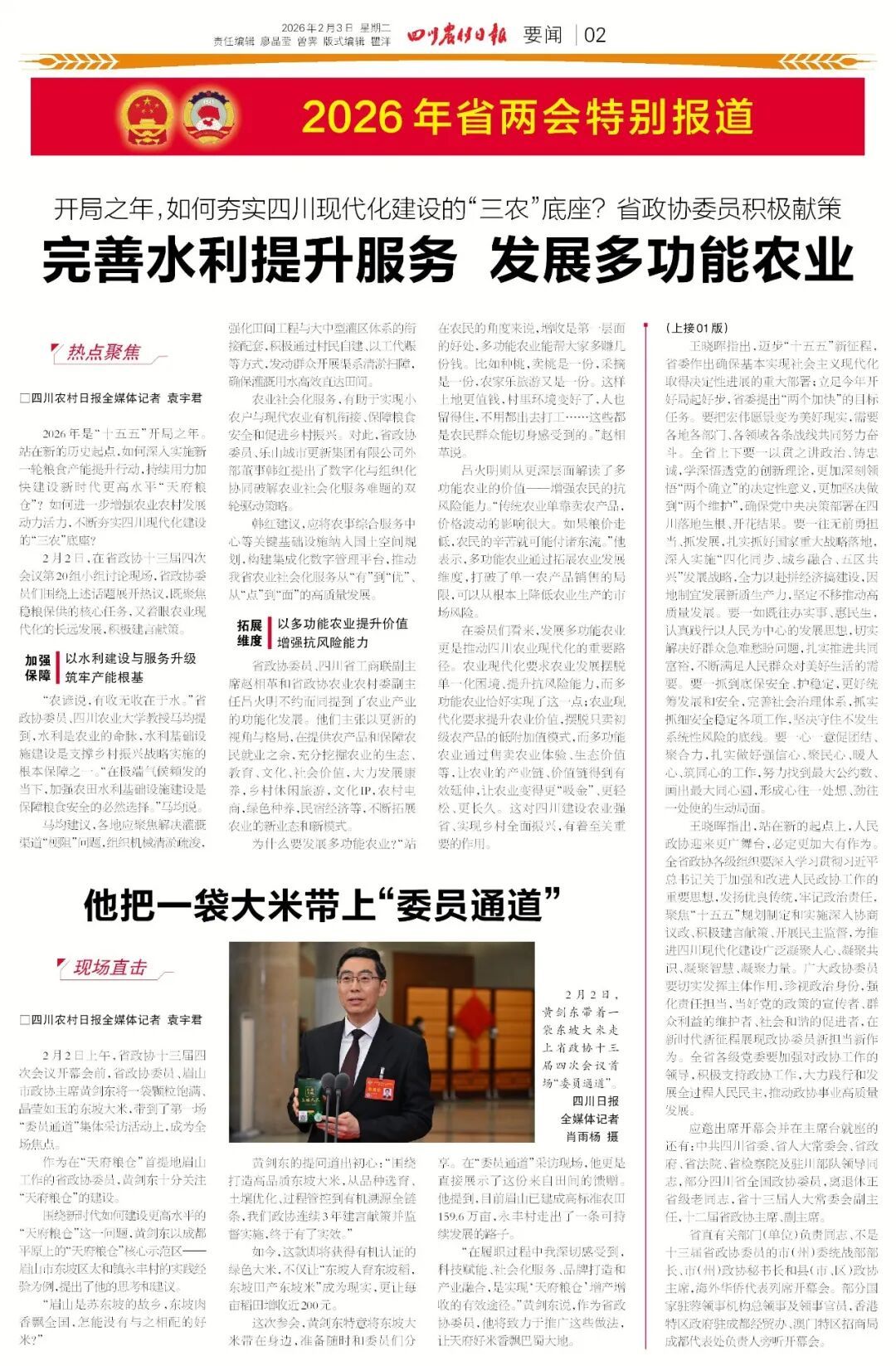 带着大米上会,为“天府粮仓”代言!水利怎么建?农业怎么搞?省政协委员积极献策,谈怎么让土地提升产出效益、让农民多赚几份收入。