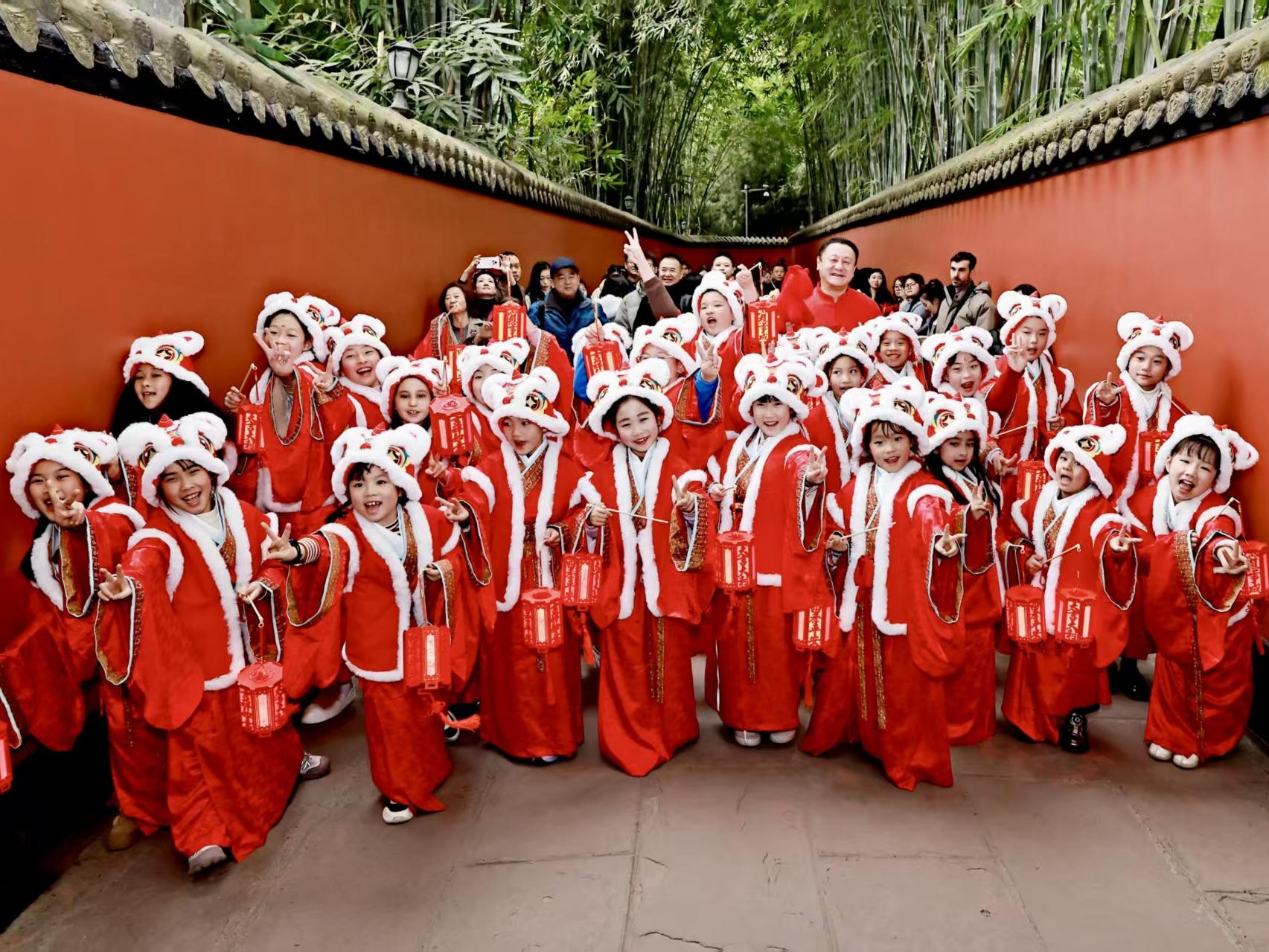 据介绍,今年武侯祠成都大庙会的“小喜神”多达55位。作为传统年味的国际范儿担当,国际“小喜神”一直备受关注。今年,成都武侯祠博物馆专门推出英语、法语、德语、俄语、西班牙语、泰语等多语种招募短视频,面向全球开启招募“小喜神”。最终,中葡混血的丫米、中法混血的Jason、中国巴基斯坦混血先爱莎和先爱华姐弟俩以及中葡混血的Tici等5位适龄儿童入选今年的国际“小喜神”。