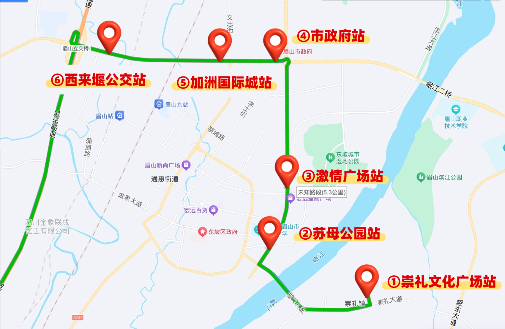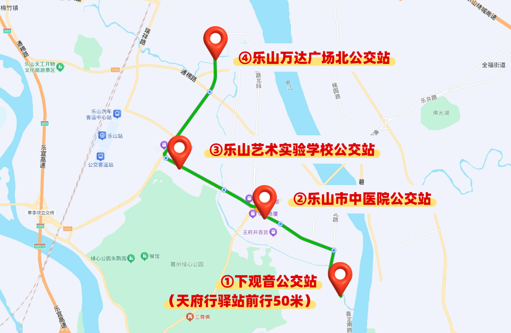 快巴采取定点定线行驶,设置多个便民停靠点,覆盖居住区、商圈、学校、医院等区域。从眉山崇礼文化广场站出发,途经苏母公园、激情广场、市政府等站点驶入成乐高速;到达乐山后经万达广场、乐山艺术实验学校、乐山市中医院等站,最终直达张公桥美食街斜对面的下观音公交站,实现“下车即美食”的无缝衔接。