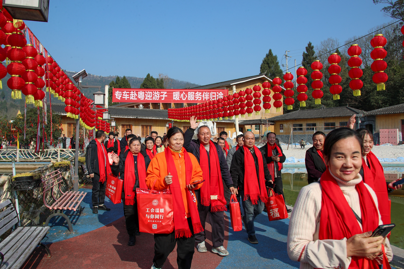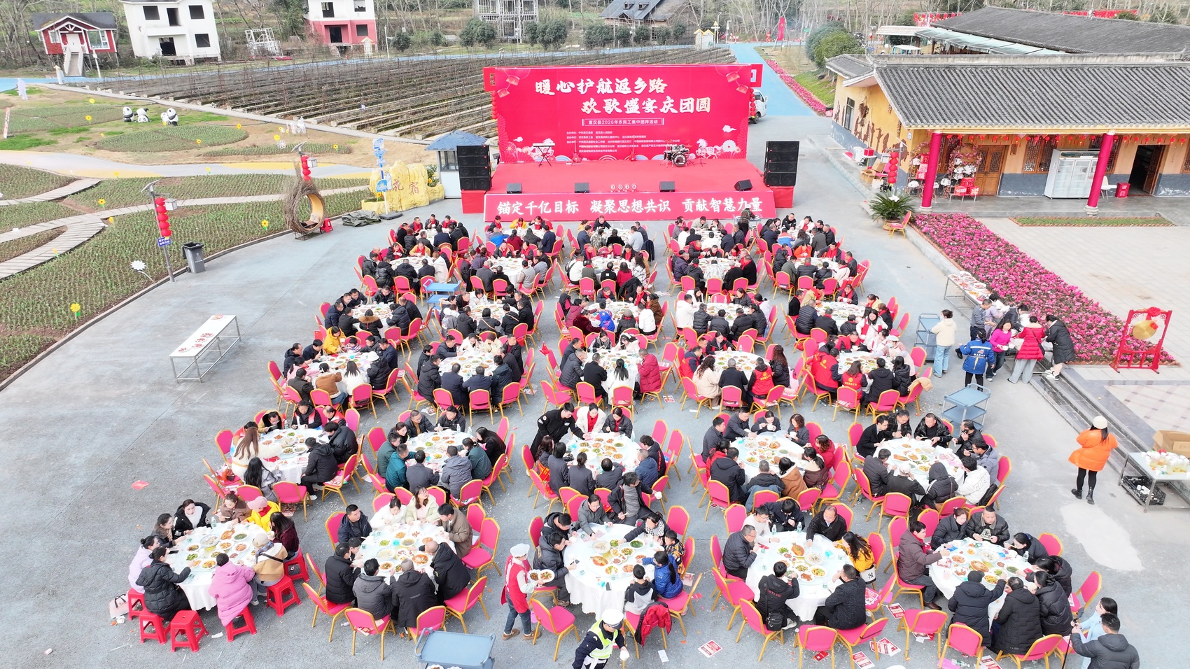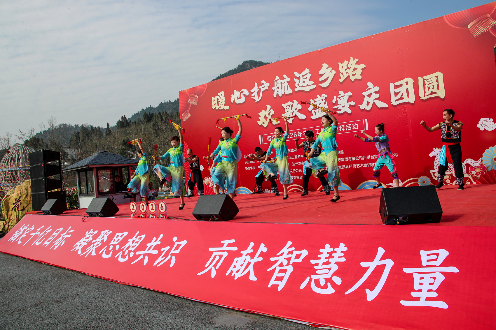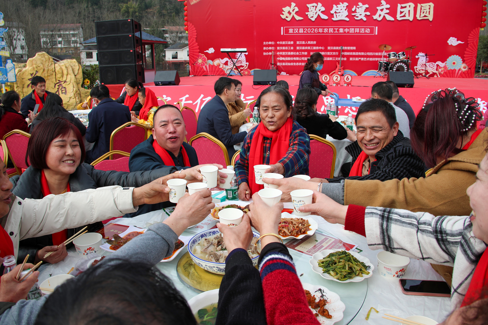 2月2日,由中共宣汉县委、宣汉县人民政府主办,县总工会、县就业服务管理局、县农民工服务中心联合县委社工部、达州农商银行宣汉支行、宣汉邮政分公司、宣汉电信分公司承办的以“暖心护航返乡路·欢歌盛宴庆团圆”为主题的农民工集中团拜活动在君塘镇花仙谷景区隆重举行。