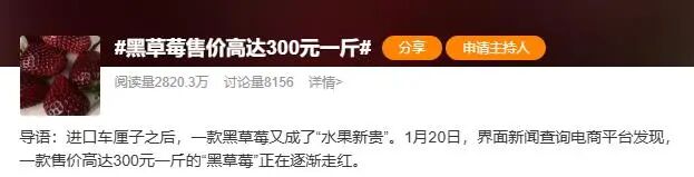 不过,黑草莓在营养价值上应当理性看待。朱毅介绍说,黑草莓与优质红草莓在维生素C、膳食纤维、矿物质等基础营养上差距不大,仅花青素含量、抗氧化能力显著占优。但若对比黑枸杞、蓝莓等水果,其花青素含量并无优势。朱毅强调,消费者应当理性消费。