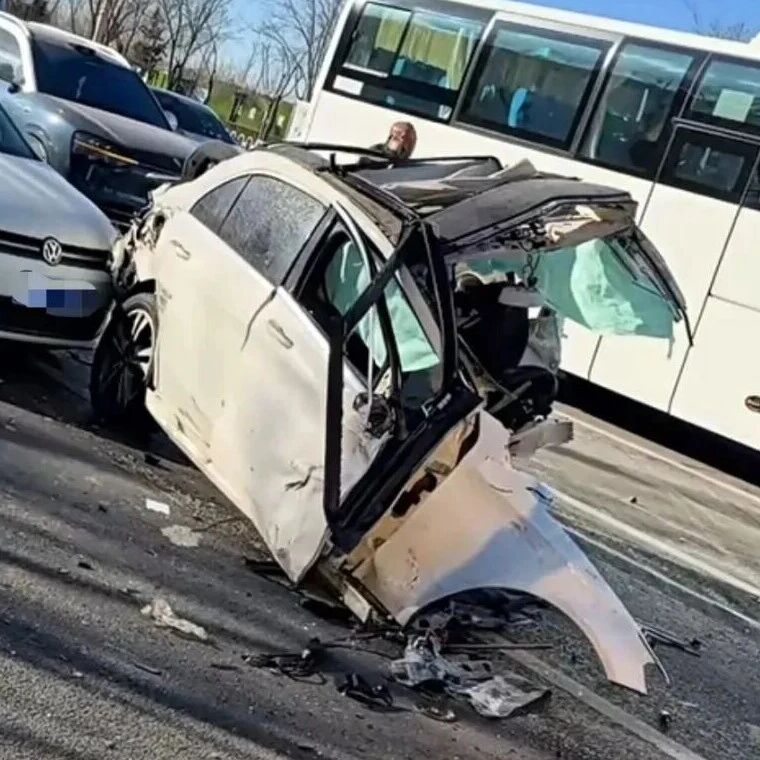 网友行车记录仪画面显示,该车在行驶过程中撞向路灯杆,导致灯杆瞬间倒塌,车头与车尾撞成两截。事发后,相关部门迅速赶赴现场处置。