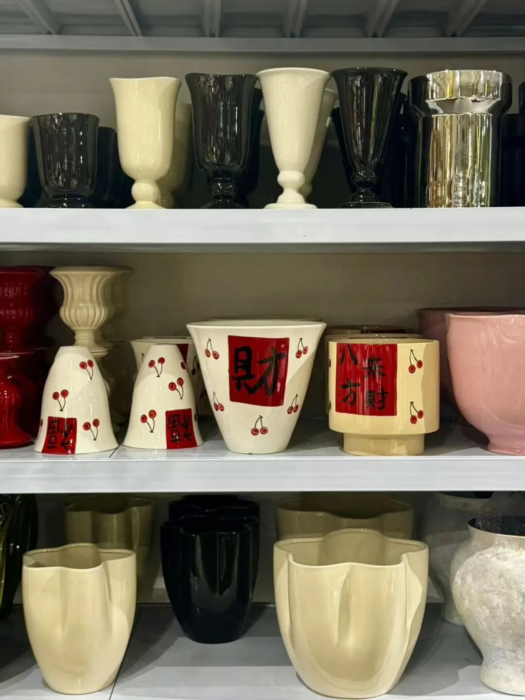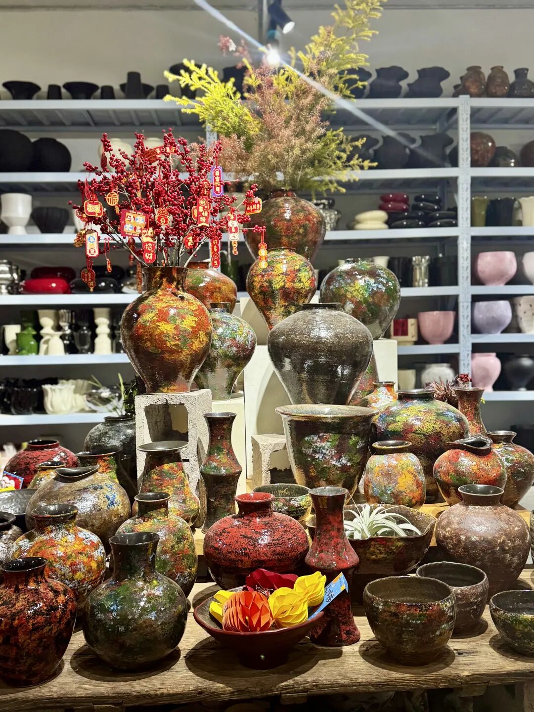 花盆店店主何女士,摸透了杭州人过年的喜好,会跟着节日节点调整货品陈列,元旦一过,石榴红、珊瑚红这些喜庆色系的花盆,立马被安排到店铺C位。