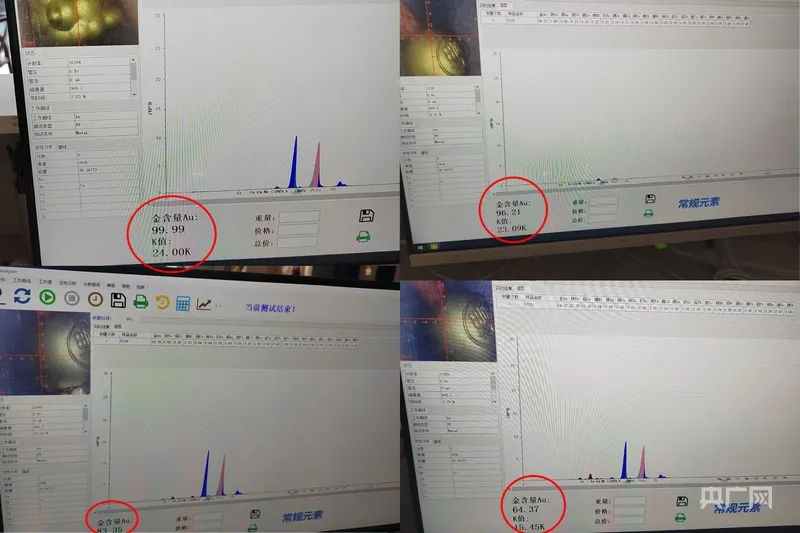 照片显示,四个点位的金含量存在差异(受访者供图 央广网发)