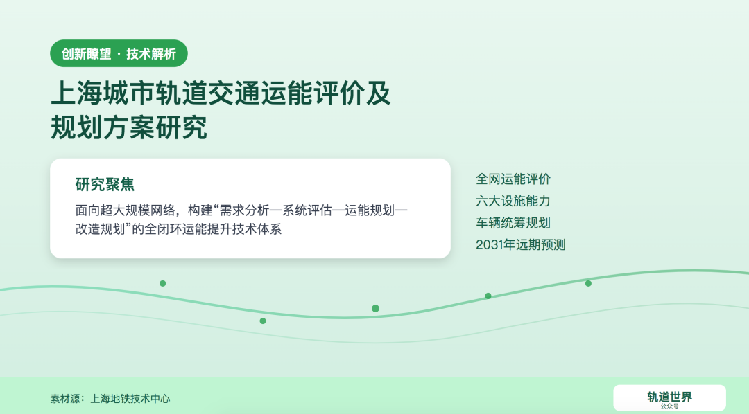 为保障上海地铁超大规模网络高质量建设与运营,技术中心以集团公司创建世界一流企业、提升“四种能力”、“加强基础、提升能力”三年行动计划的要求为指引,始终致力于以高水平科技创新推动上海地铁高质量发展,旨在为广大乘客提供更高效、更便捷、更舒适的出行体验。本栏目作为介绍技术创新成果、分享技术研发干货、探讨行业前沿科技的平台,希望能为读者带来多样化观察视角和研讨方向。