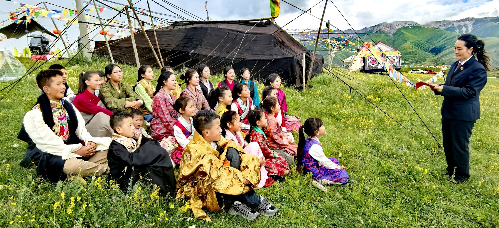 2025年7月,甘孜县检察院检察官在牧场为孩子们开展法治宣讲。