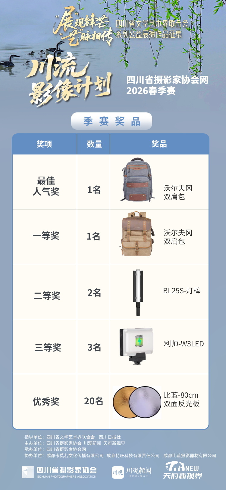 本次川流影像计划四川省摄影家协会网2026春季赛,以“让四川的春天 在镜头里生长”为主题语,旨在通过摄影作品展现四川春天的生机与活力。