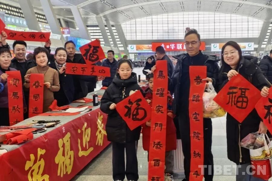 图为西宁站春运首日游客参与迎新春活动