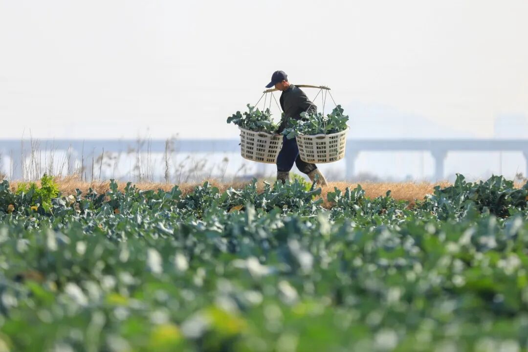 2026年2月2日,浙江省温岭市箬横镇的村民在田间采收西兰花。张旭潮摄
