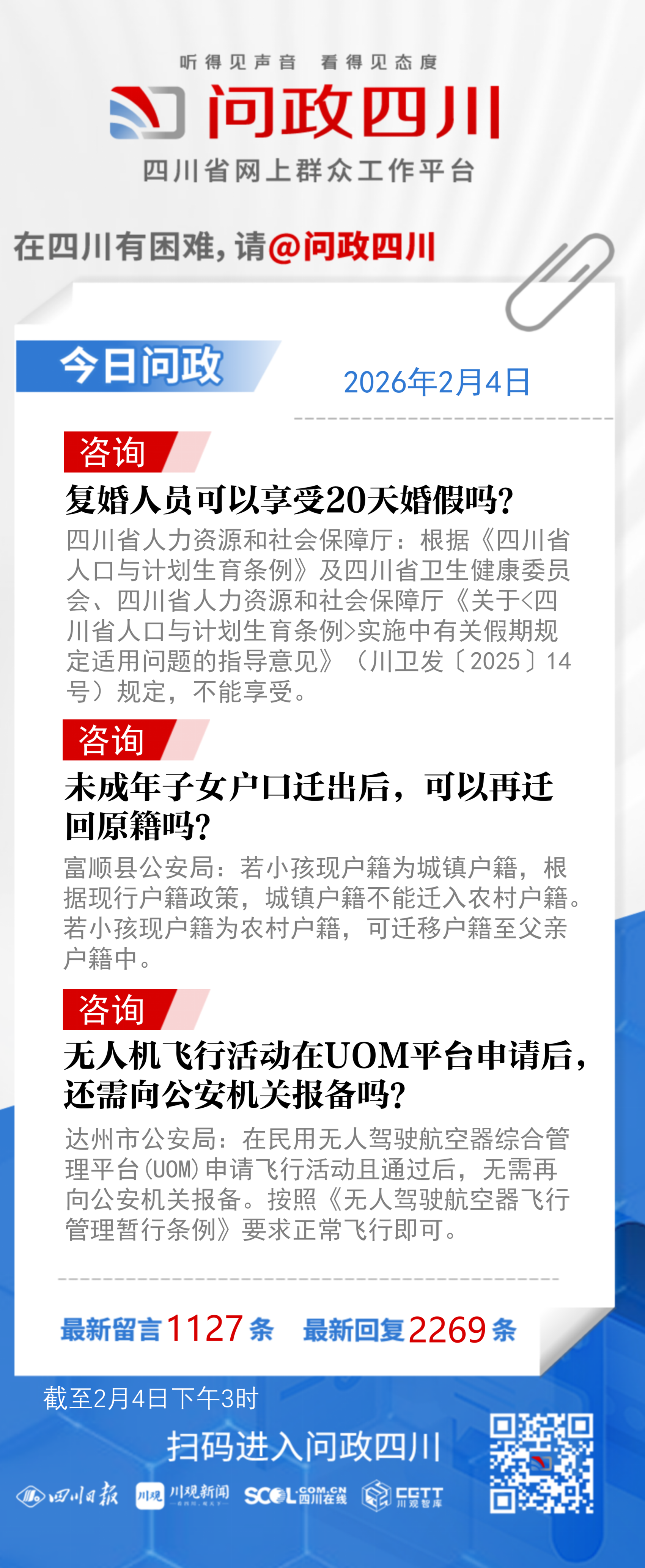 问政四川网友提问:四川省内复婚人员可以享受20天婚假吗?