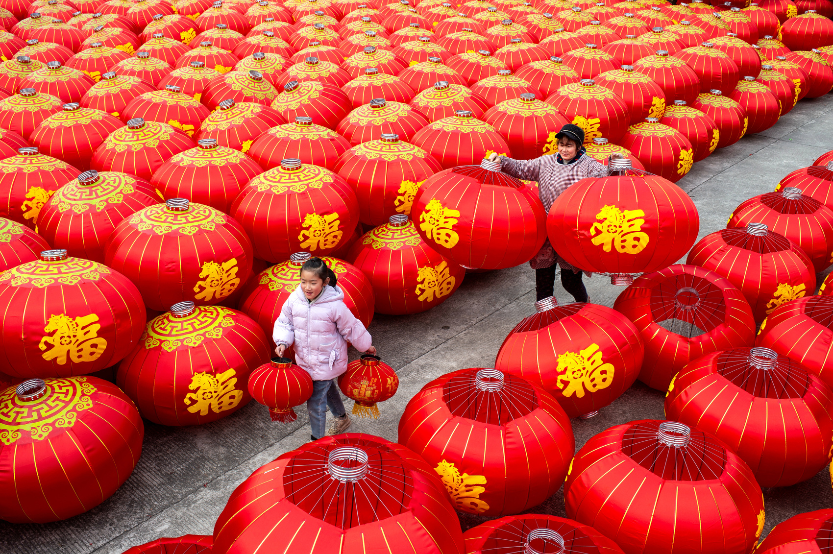 腊月里,成都市金堂县金龙镇处处洋溢着喜庆暖意。鸿发灯笼厂内,红灯笼层层叠叠铺了满地,绸布面上,烫金福字与奔马图案跃然其上。工人们巧手翻飞,把竹骨与红绸细细缀合。
