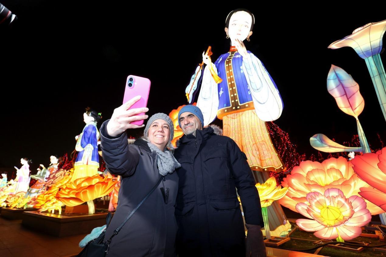 2月3日,土耳其驻华大使夫妇在杨柳青灯展自拍留念。(海外网 谢明 摄)