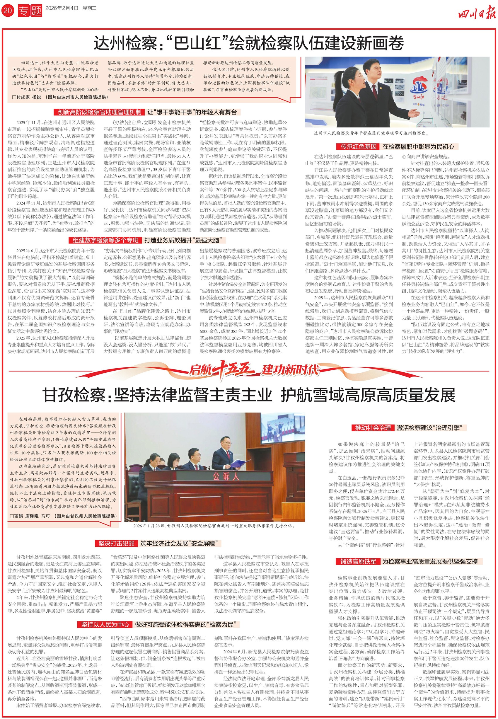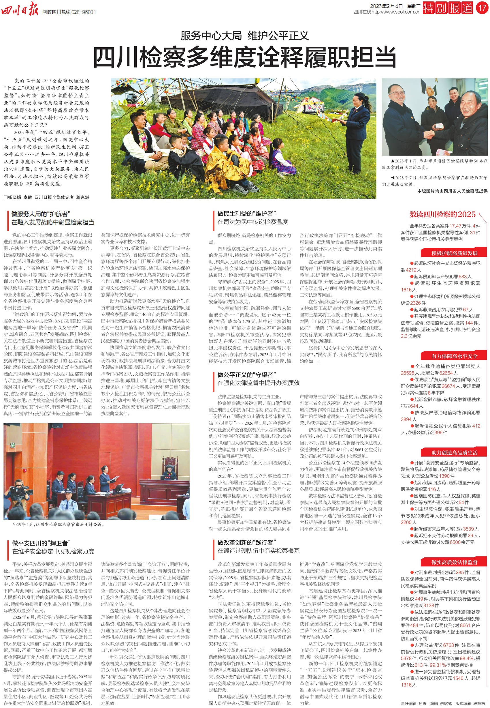 从更多维度融入更高水平平安四川法治四川建设,自觉为大局服务、为人民司法、为法治担当——2026年2月4日,《四川日报》以四个整版,呈现四川检察机关的2025答卷。