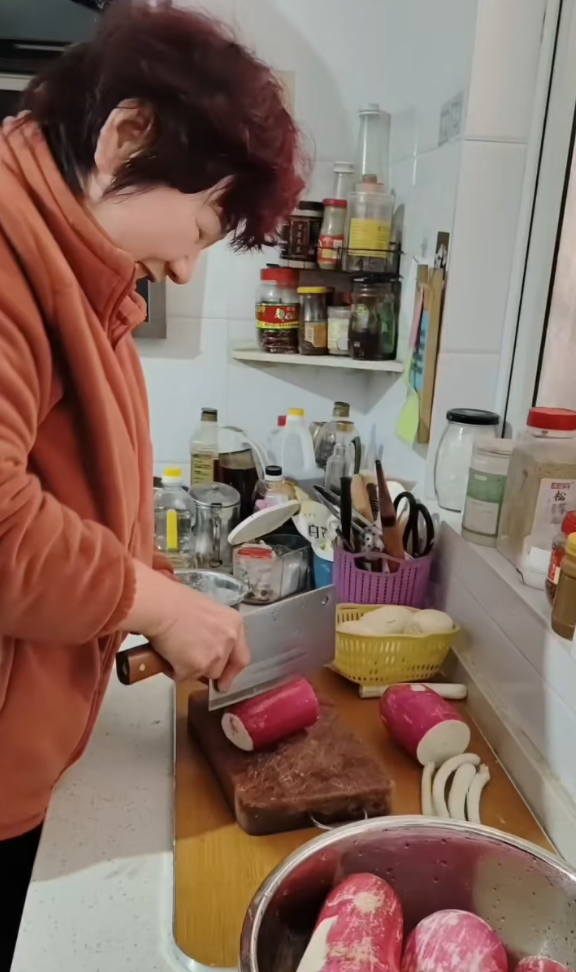 原来,在王京三去敲窗邀请前,大姐王大丽、二姐王小丽就已先回家做准备。“家里有弟弟做货车司机,我们深知这份工作多么不容易。刚好那天早上我们买了羊肉,大姐赶紧把羊肉拿出来,我负责切块,就想着合力给他做一碗热乎的羊肉炝锅面。”王京三说,农村没什么好东西,一碗热面是她们最实在的心意。
