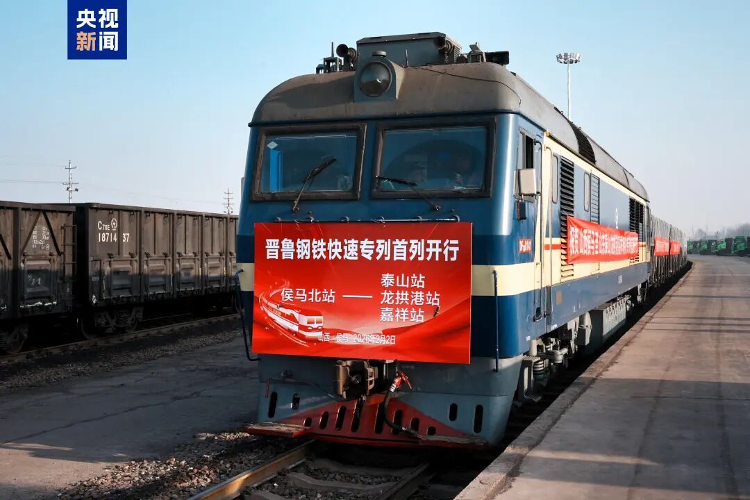 记者从国铁太原局获悉,2026年2月2日,在山西省侯马市,一列满载3018吨钢材的14560次货运列车从侯马北站启程,24小时直达山东泰山站、龙拱港站和嘉祥站。这趟钢铁快运专列的首发开行,既搭建起山西山东两地“点对点”便捷高效的钢铁快运新通道,也为春运期间重点物资运输筑牢保障。
