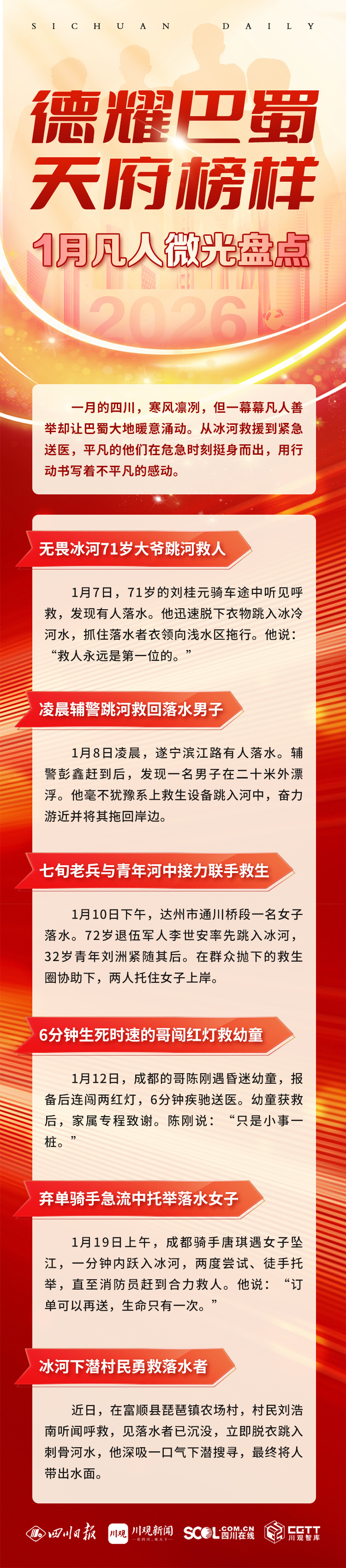 一月的寒风里,是他们的纵身一跃、争分夺秒,让冰冷的河水有了温度。这些平凡的英雄,用最朴素的善意,温暖了整个巴蜀大地。