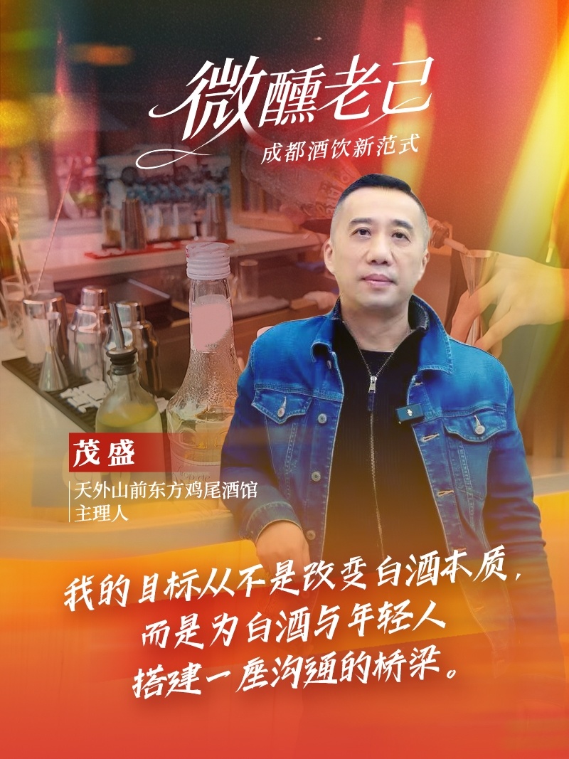 这场为白酒“搭桥”的尝试,源于茂盛刻在骨子里的白酒情怀。他是土生土长的泸州人,老家距离泸州老窖国宝窖池不到50米,多年的营销策划经历,让他敏锐地捕捉到痛点:年轻人聚会偏爱啤酒、洋酒,对白酒的印象还停留在“辛辣、古板”,而中国千年白酒文化,应该赓续传承下去。