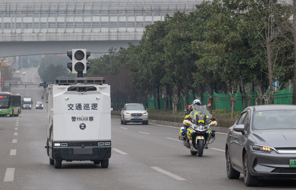 该智能无人巡检装备于2026年1月投入路测,每日独立执行勤务任务约40件次,发现并提醒交通违法行为300件次以上,将于春节前正式上岗。