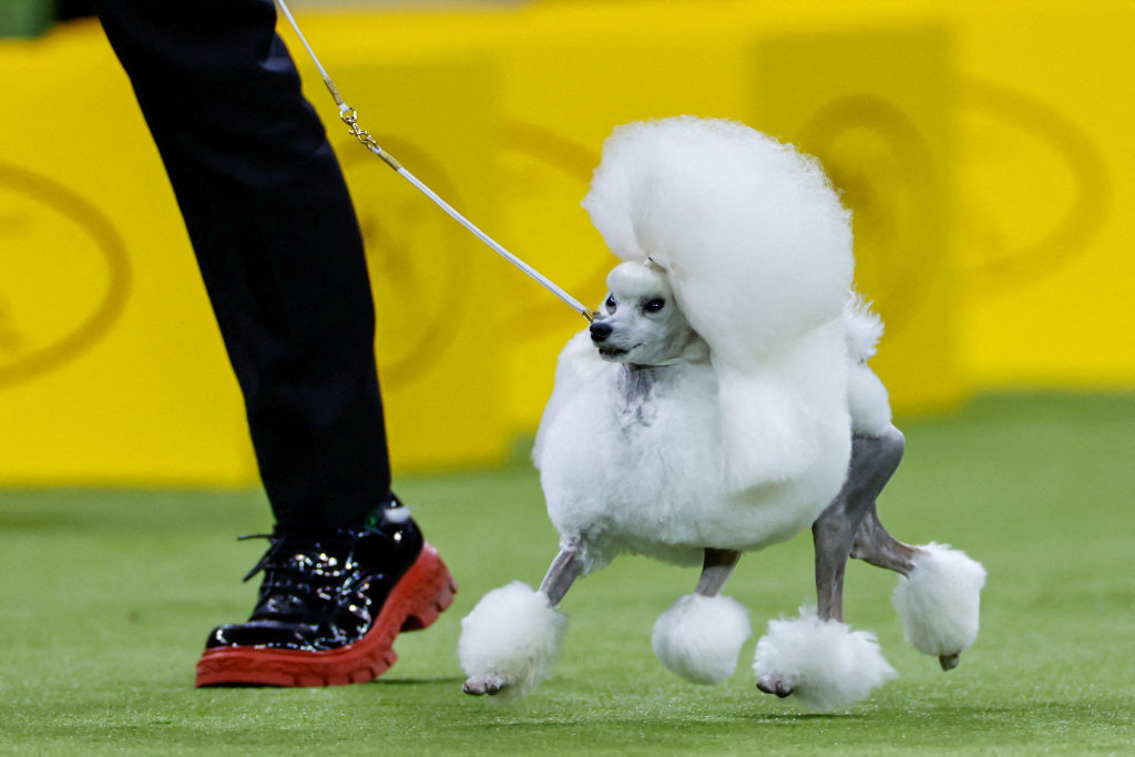 这是2月2日在美国纽约举行的第150届威斯敏斯特犬展上拍摄的一只贵宾犬。
